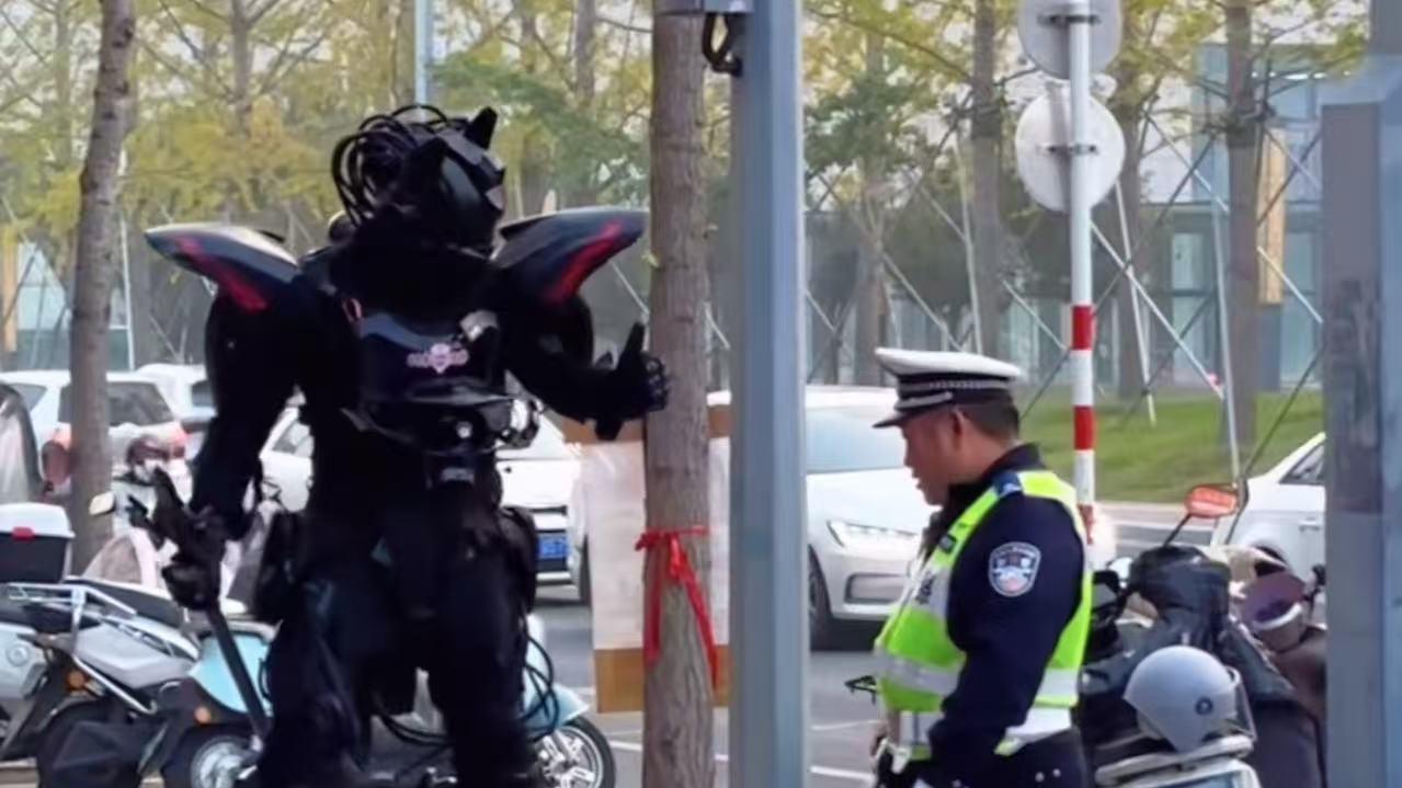 “钢铁侠”现身奶茶店震惊路人 河南男子用废品造机甲:几千块圆了少年梦