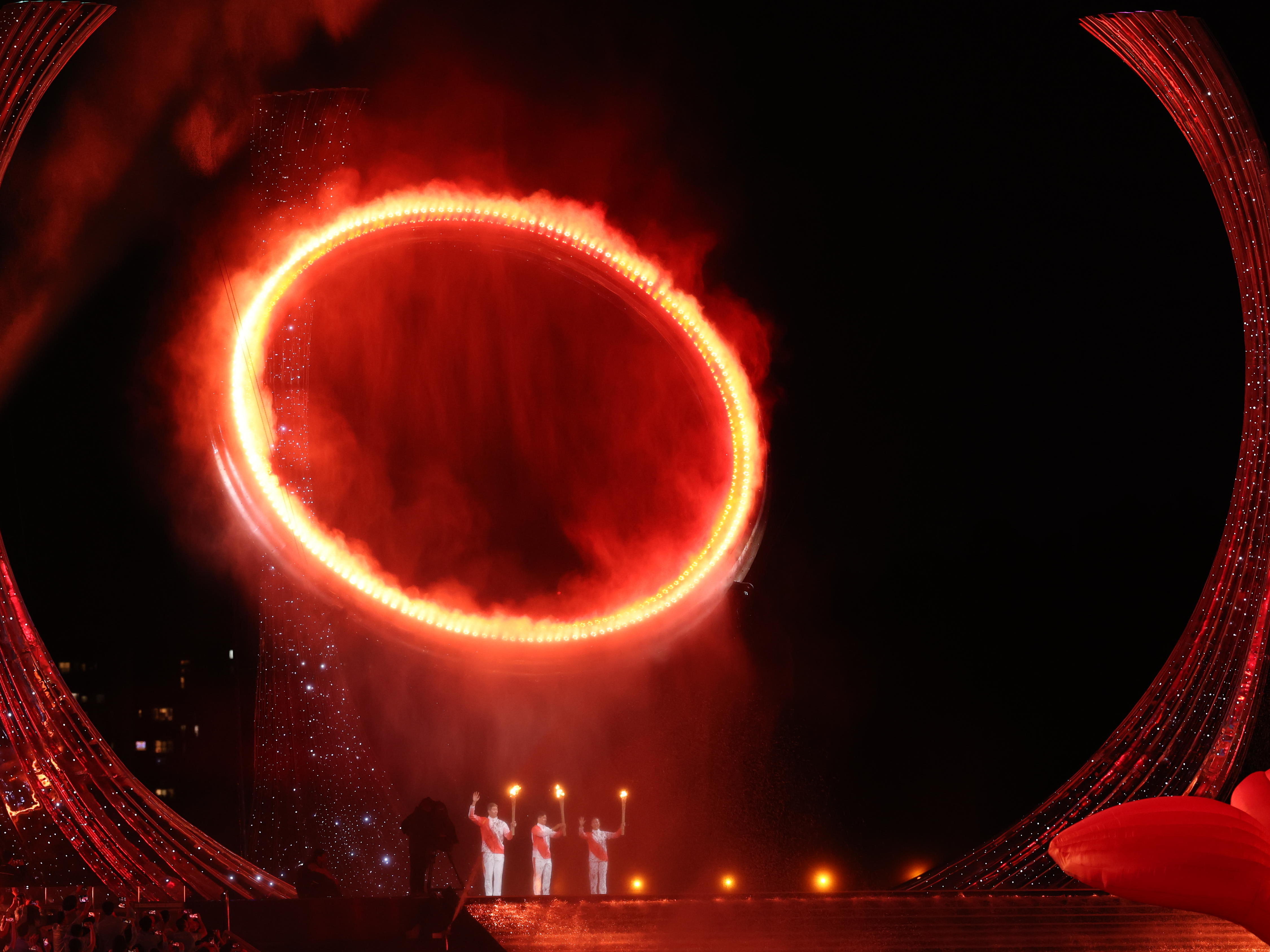 视频丨全运会历史上首次!电光水雾“点燃”主火炬塔