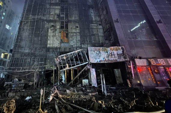 山西太原一高层建筑着火