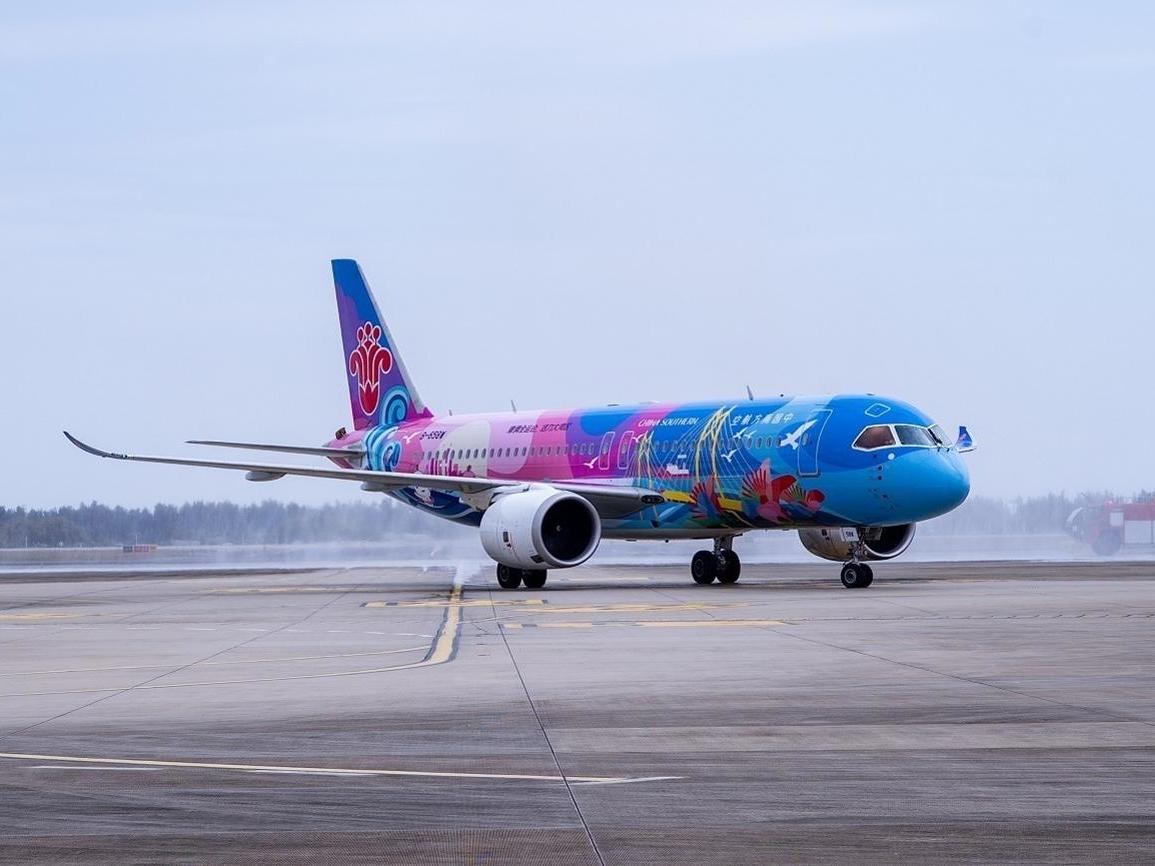 亮丽涂装展新颜 国产大飞机C919再添新航线
