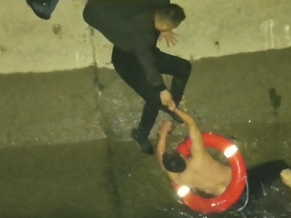 男子江中游泳体力不支被困 消防联合群众成功营救|看见正能量