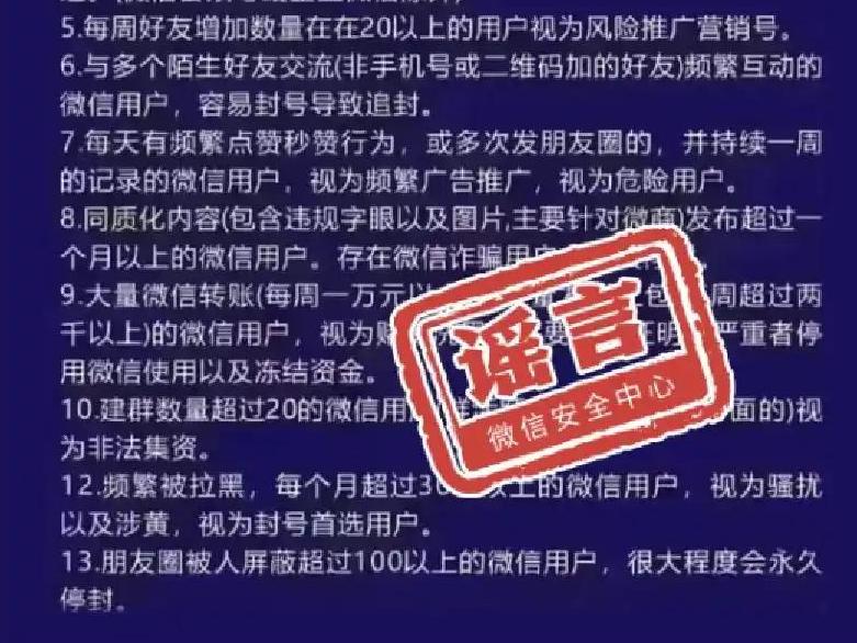 “微信好友数量过多会被封号”不实——今日辟谣(2026年1月7日)