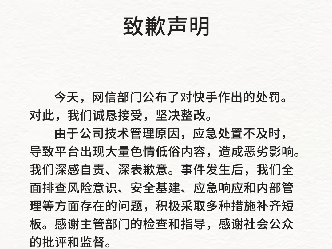 快手回应被处罚:诚恳接受处罚,坚决整改