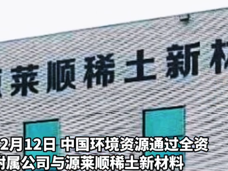 瞄准稀土合作!中国环境资源900万收购四川射洪企业90%股权