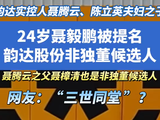韵达实控人聂腾云、陈立英夫妇之子,24岁聂毅鹏被提名韵达股份非独董候选人