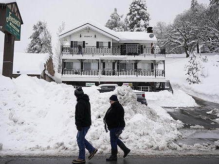 美国冬季风暴持续 加州多名居民因积雪被困家中超过一周