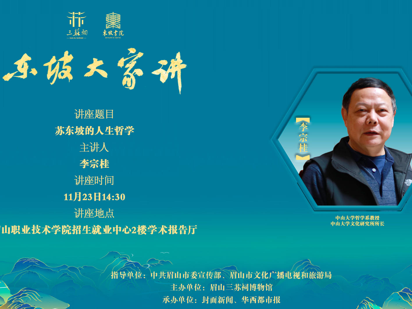 “老乡遇老乡” 李宗桂教授将在眉山开讲苏东坡|东坡大家讲