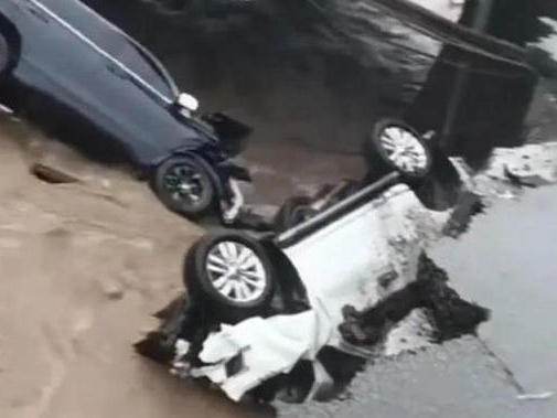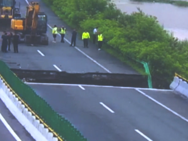 黑龙江哈牡高速因降雨发生坍塌,有车辆坠落
