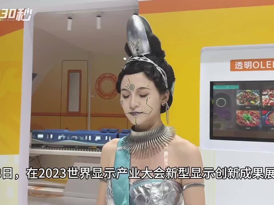 30秒 | 超酷!赛博朋克汉服小姐姐带你体验时速160公里氢能源列车|2023世界显示产业大会