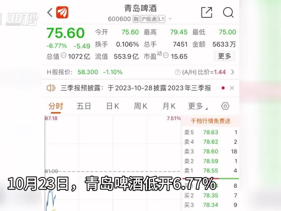 30秒|开盘跌近7% 青岛啤酒回应:相关麦芽已全部封存