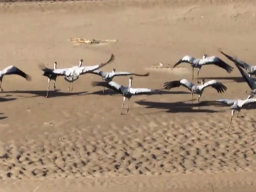 候鸟来了!200余只国家二级保护动物灰鹤飞抵黄河湿地