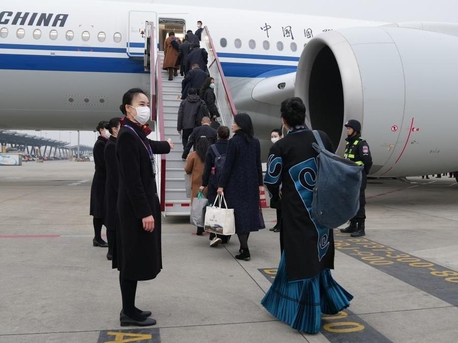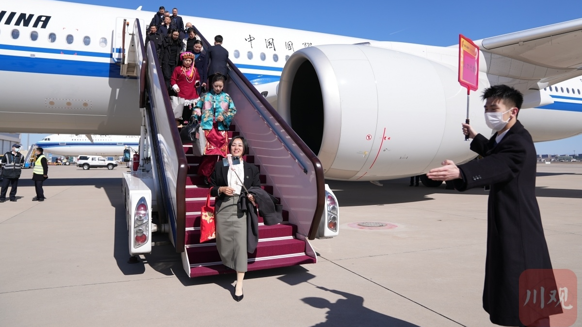 出席十四届全国人大二次会议的四川代表团代表抵京|图集
