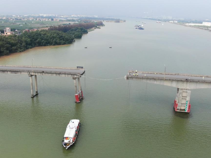 广州市南沙应急局:沥心沙大桥被船只撞断,正在营救中