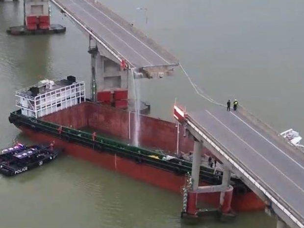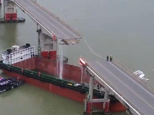 广州南沙一大桥被船只撞断 2人死亡 3人失联