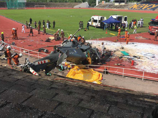当地时间23日上午,在马来西亚红土坎地区举行的海军建军日彩排活动中,两架直升机在飞行中相撞,10名机组人员全部遇难。
