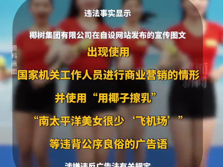 椰树集团发布擦边广告被罚40万,涉及使用国家机关工作人员进行商业营销