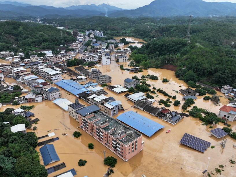 6月16日,受强降水云系影响,广东梅州多地出现大暴雨局部特大暴雨,其中,平远县泗水镇24小时降水达369.3毫米,全市多地受灾严重。