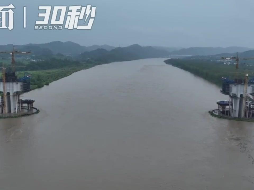30秒丨2024年首次嘉陵江洪峰过境
