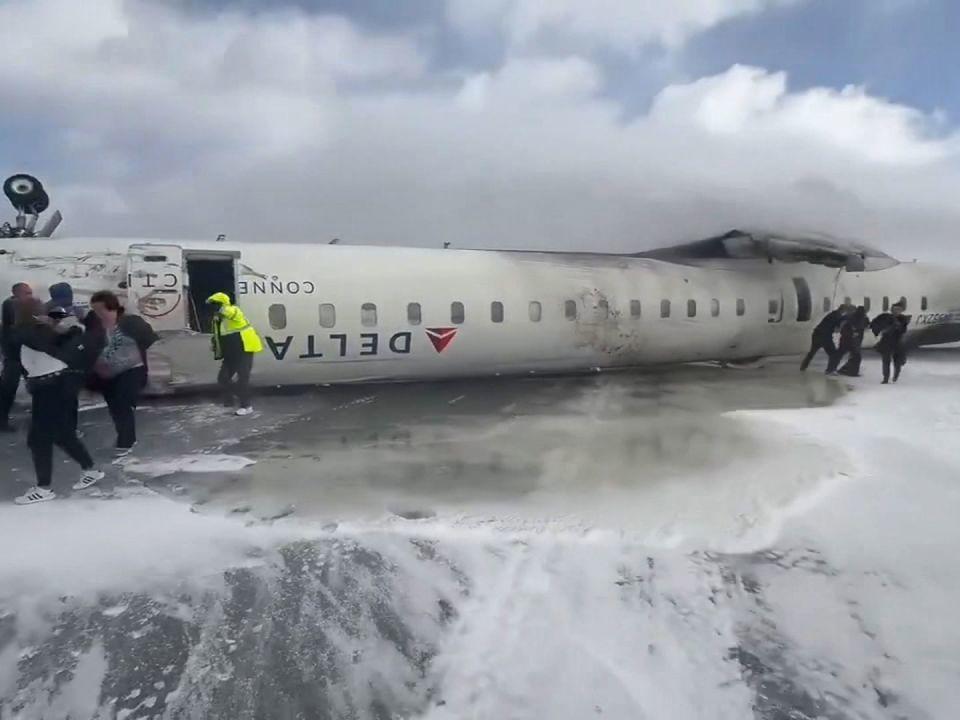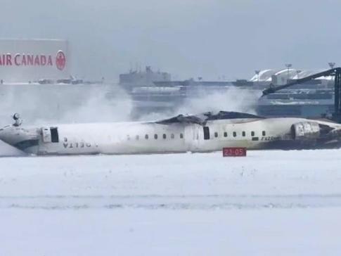 当地时间2月17日,美国达美航空公司一架载有80人的客机在加拿大多伦多皮尔逊国际机场降落时发生事故,机身翻转落地。