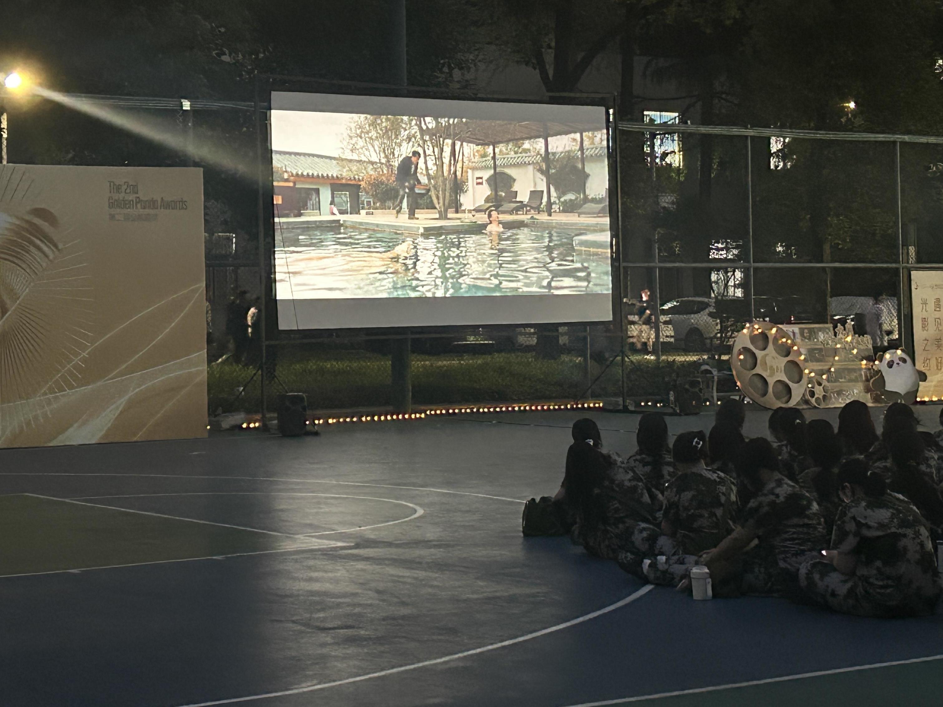 吹着微风在成都西村看场“坝坝电影 ”跟“金熊猫”一起好惬意|摸娱姐妹