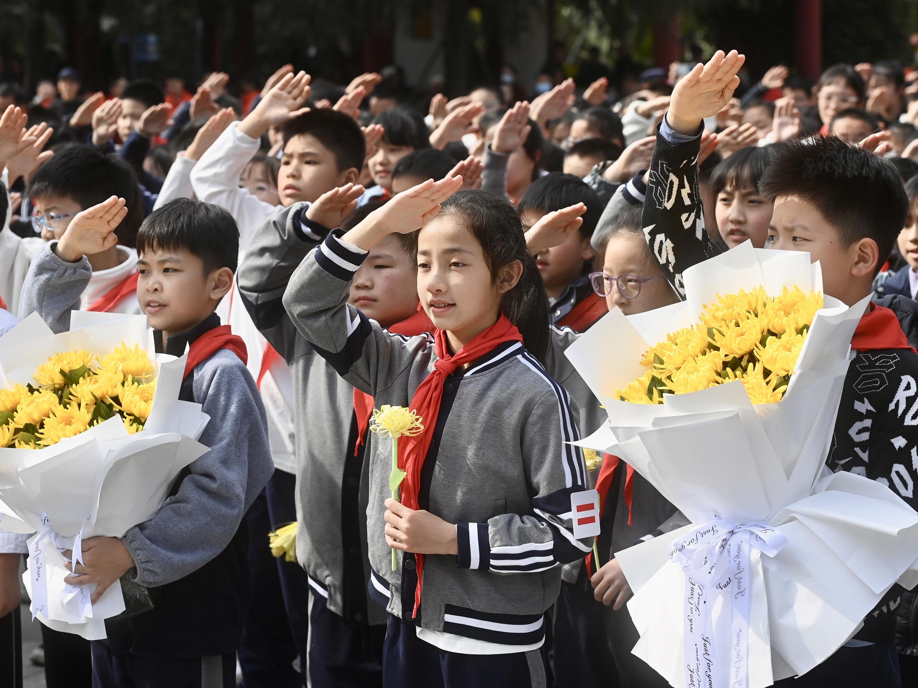 一笔一画描红英名 四川通江300名少年清明祭英烈
