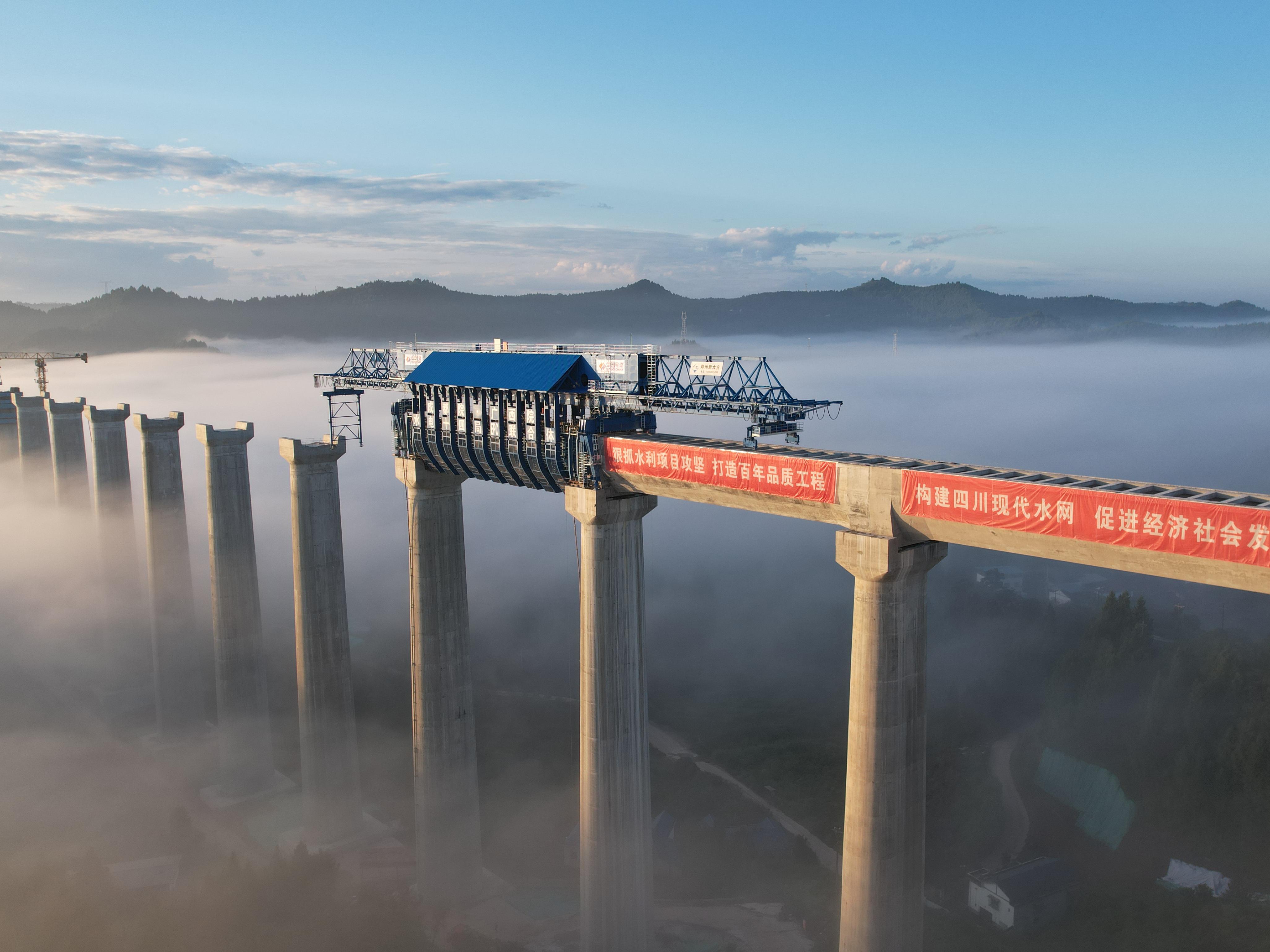 全长超4394米 成渝中线高铁姚家坝特大桥完成最后一墩浇筑