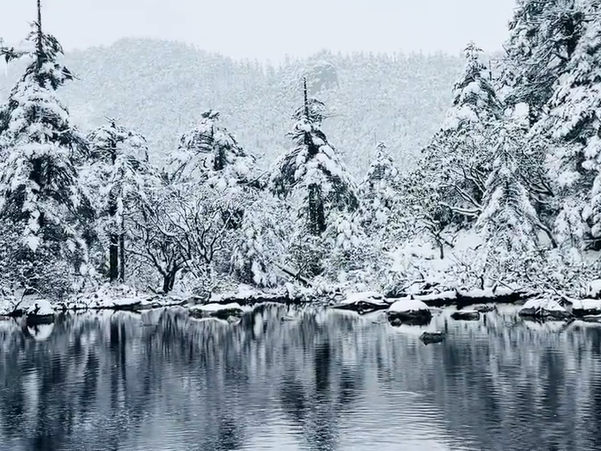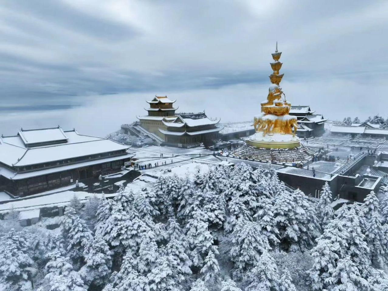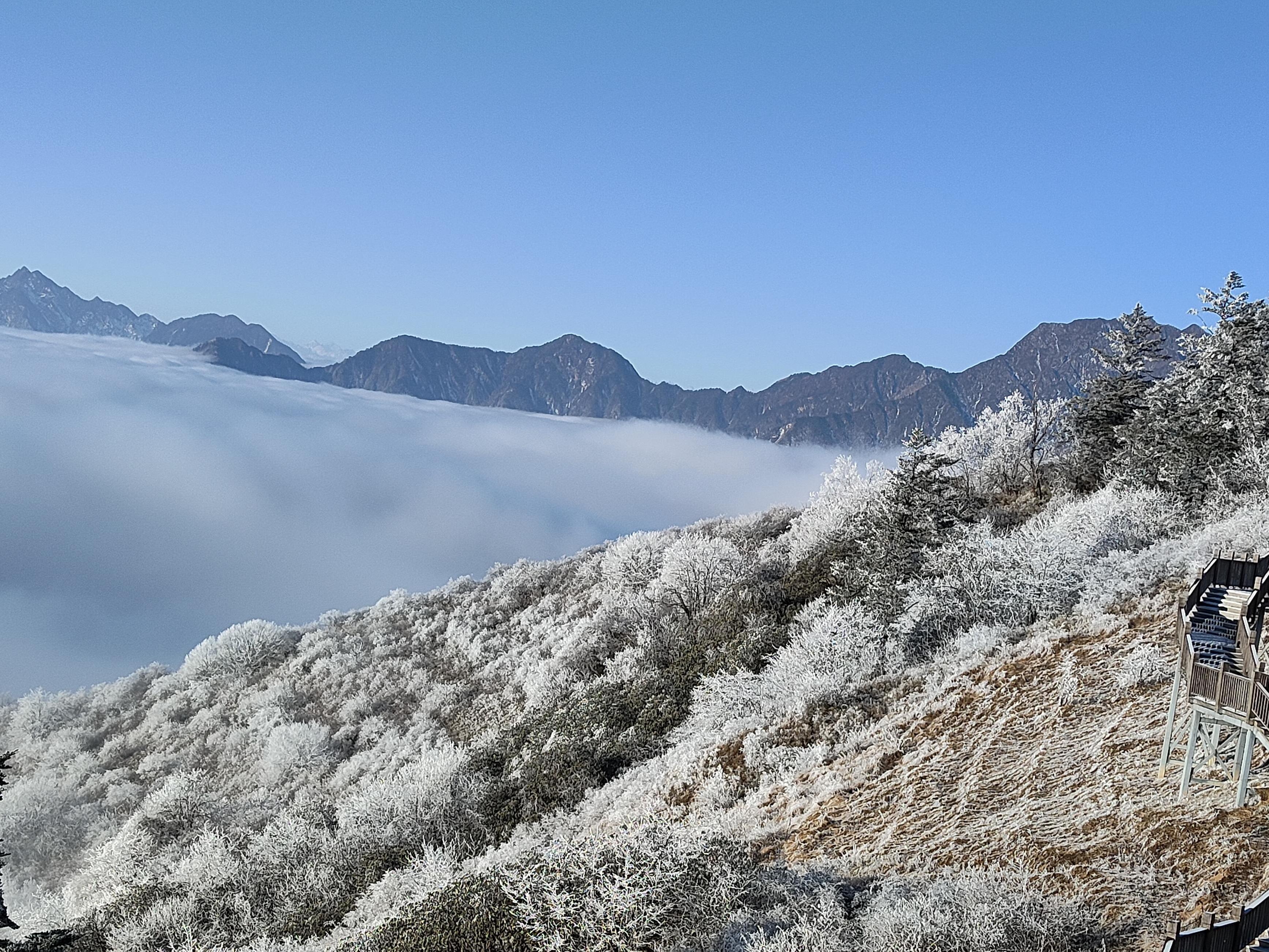 四川凉山螺髻山迎来今秋第一场雪 银装素裹宛如童话世界