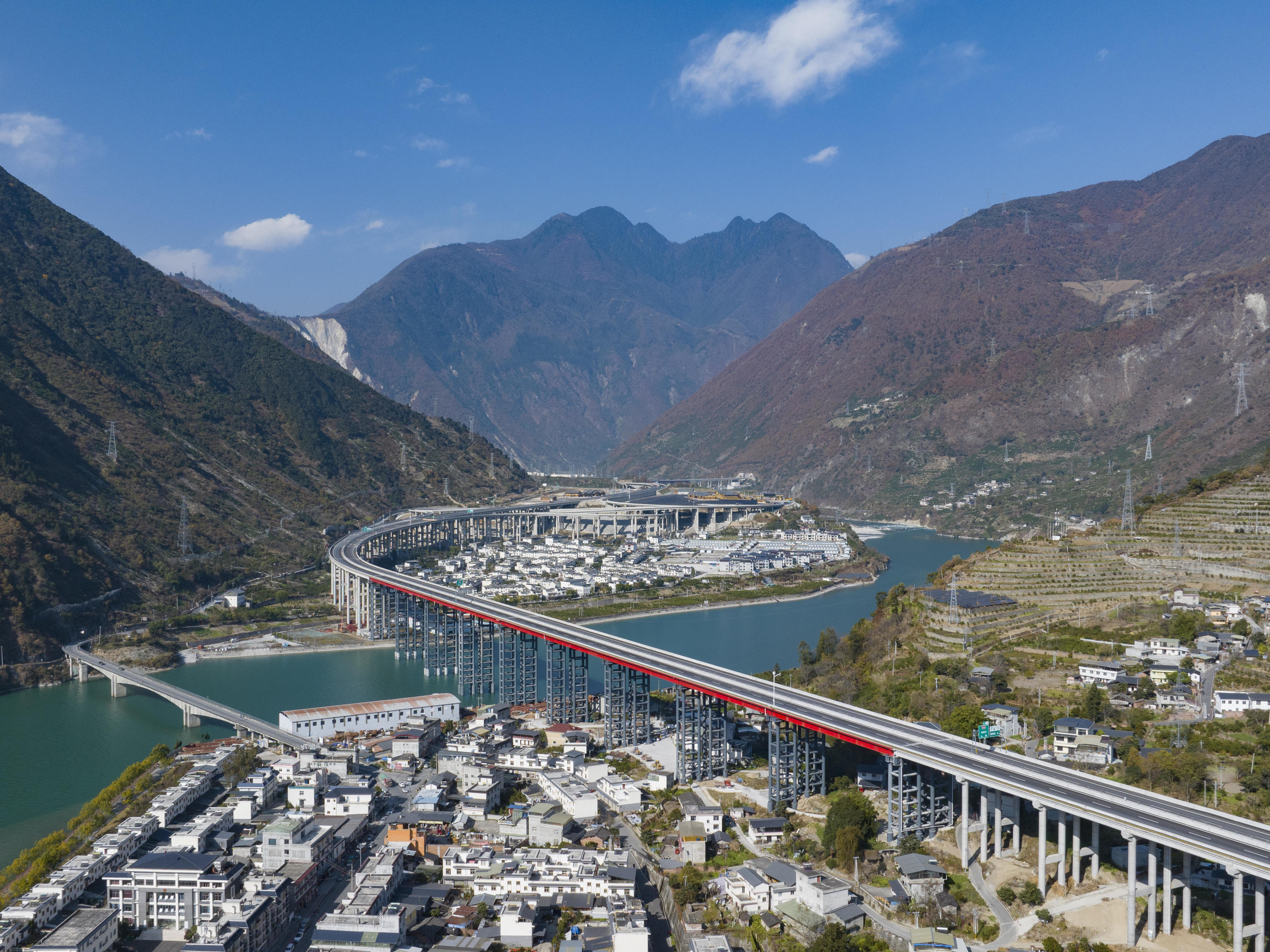 全国首例!天眉乐高速虎渡溪岷江特大桥“超薄桥面板”精准安装
