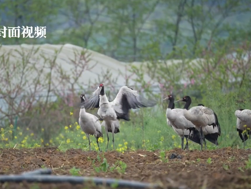 高原精灵黑颈鹤启程北迁 摄影师拍下“斗舞”画面