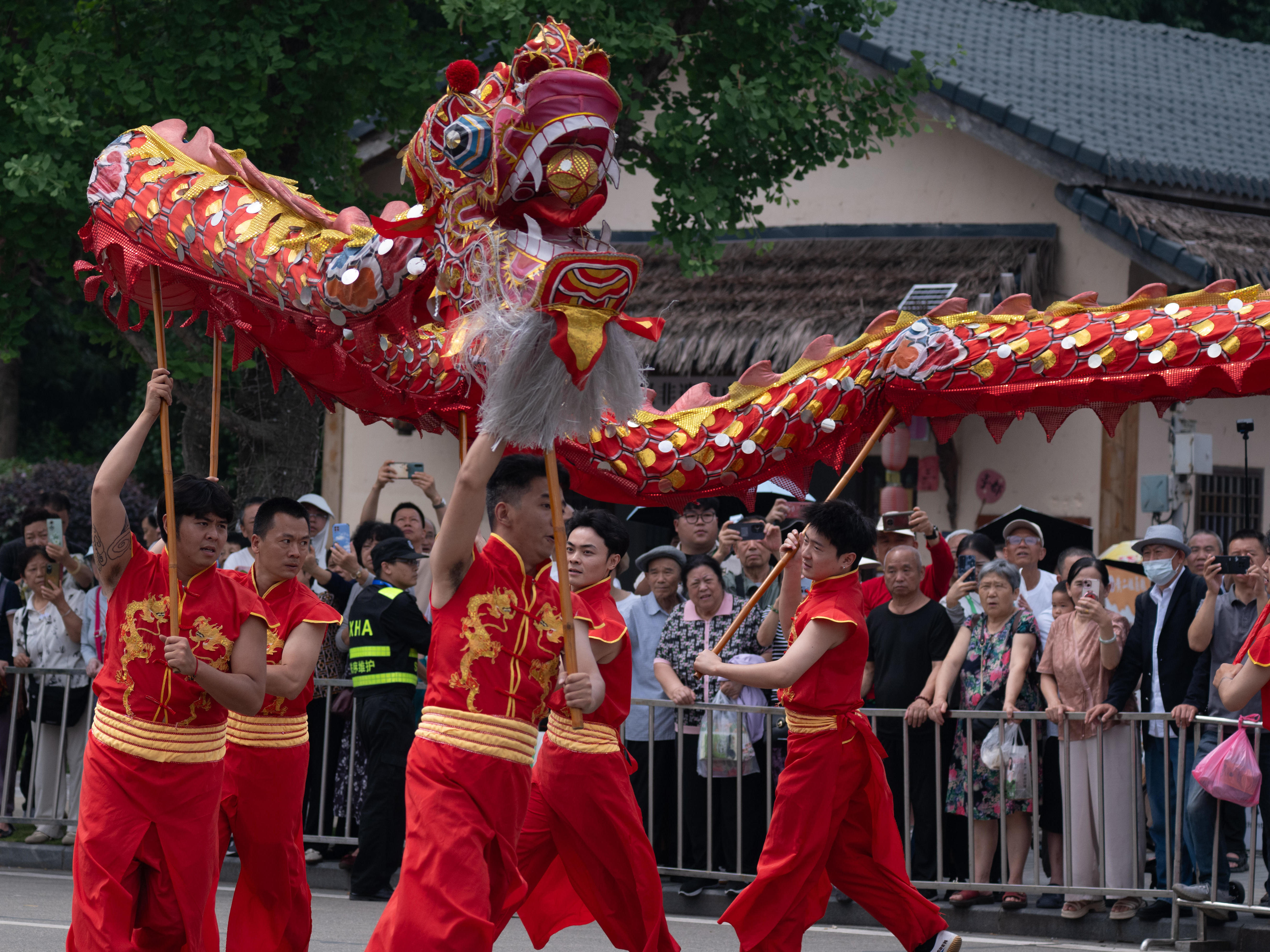 成都非遗演出火牛阵亮相新津端午节会 再现川西战舞