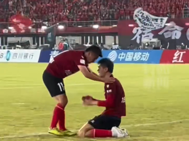 凉山5:0雅安 敬酒歌声中貊貊和金鹰牵手绕场成“名场面”