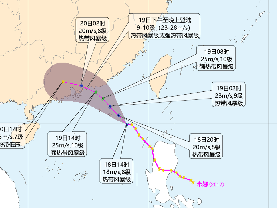 台风“米娜”将正面登陆广东 广东将防风应急响应提升至Ⅲ级