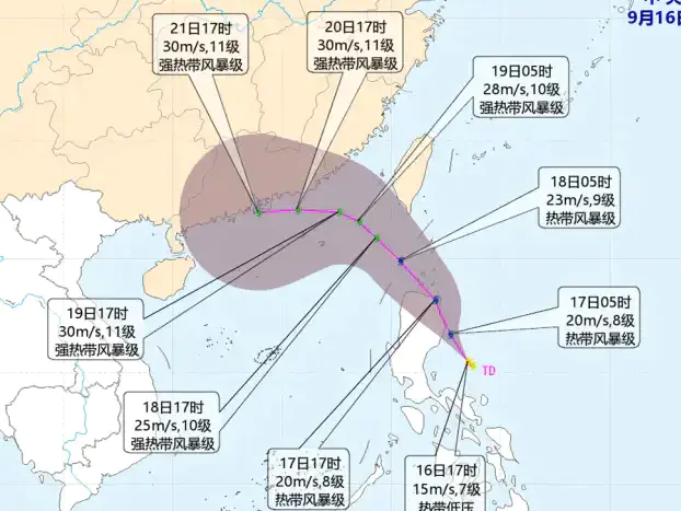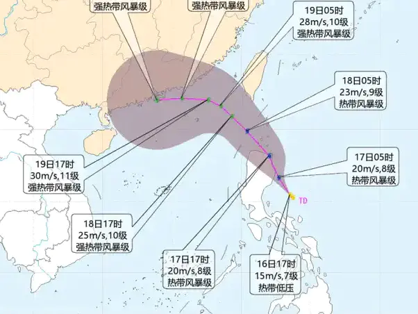 热带低压将发展为今年第17号台风 向广东中东部沿海靠近