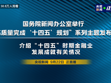 9月22日下午3时,国务院新闻办公室举行“高质量完成‘十四五’规划”系列主题新闻发布会,介绍“十四五”时期金融业发展成就。