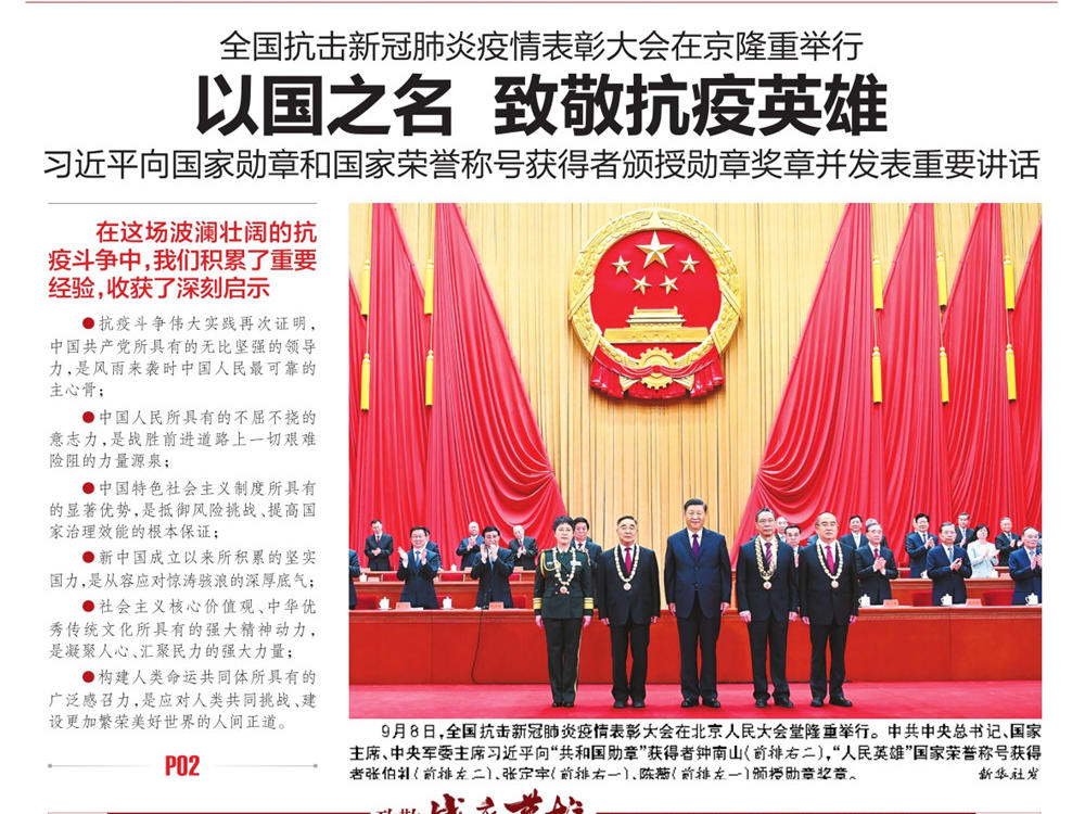 9月8日,全国抗击新冠疫情表彰大会将举行。谢谢你们守护生命,拼命坚持,倾尽所有,用实际行动证明人民至上、生命至上!