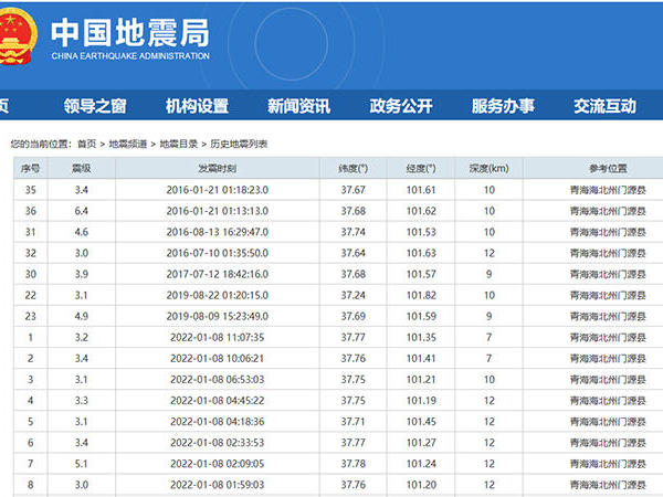 1月8日1时45分在青海海北州门源县发生6.9级地震,震源深度10千米。