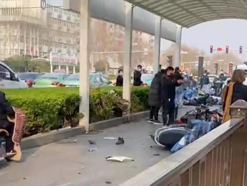 3月20日16时36分,在河北邯郸市一交通路口,一辆轿车将十几位等待通行的市民撞倒。