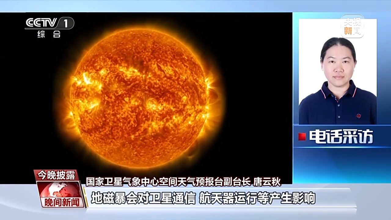 国家卫星气象中心空间天气预报台副台长 唐云秋:地磁暴虽然会对卫星通信、航天器运行等产生一定影响,但对于我们人类的身体健康以及日常生活几乎不会有影响,所以大家不用过于担心。