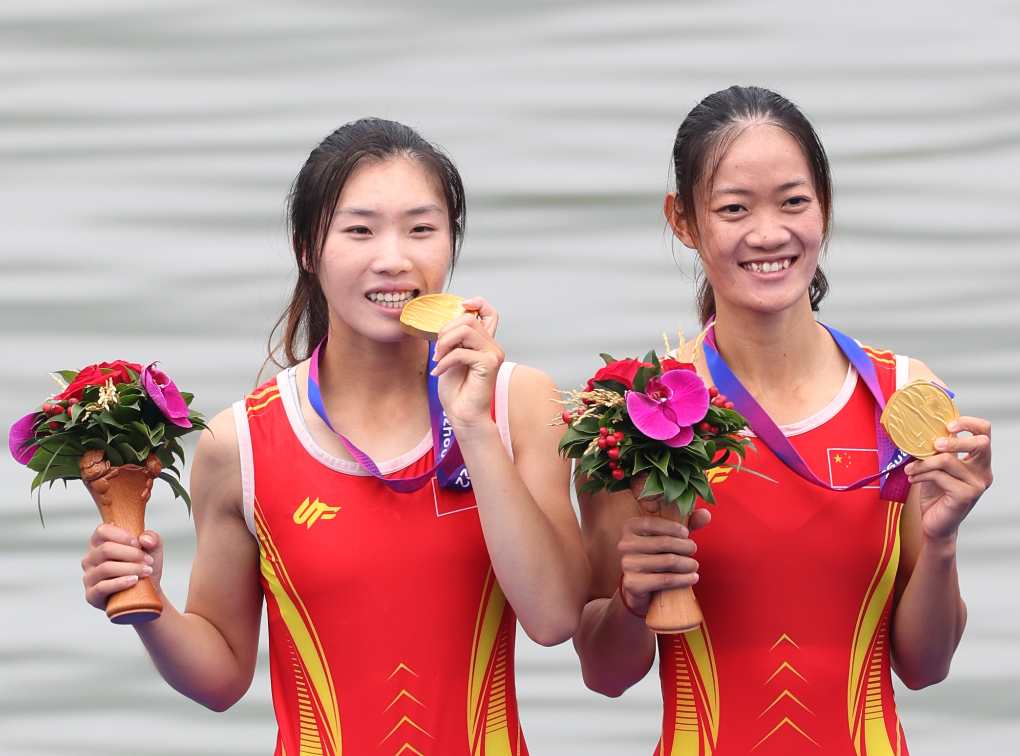 9月24日,邹佳琪(左)/邱秀萍在颁奖仪式上。新华社记者 杜潇逸 摄