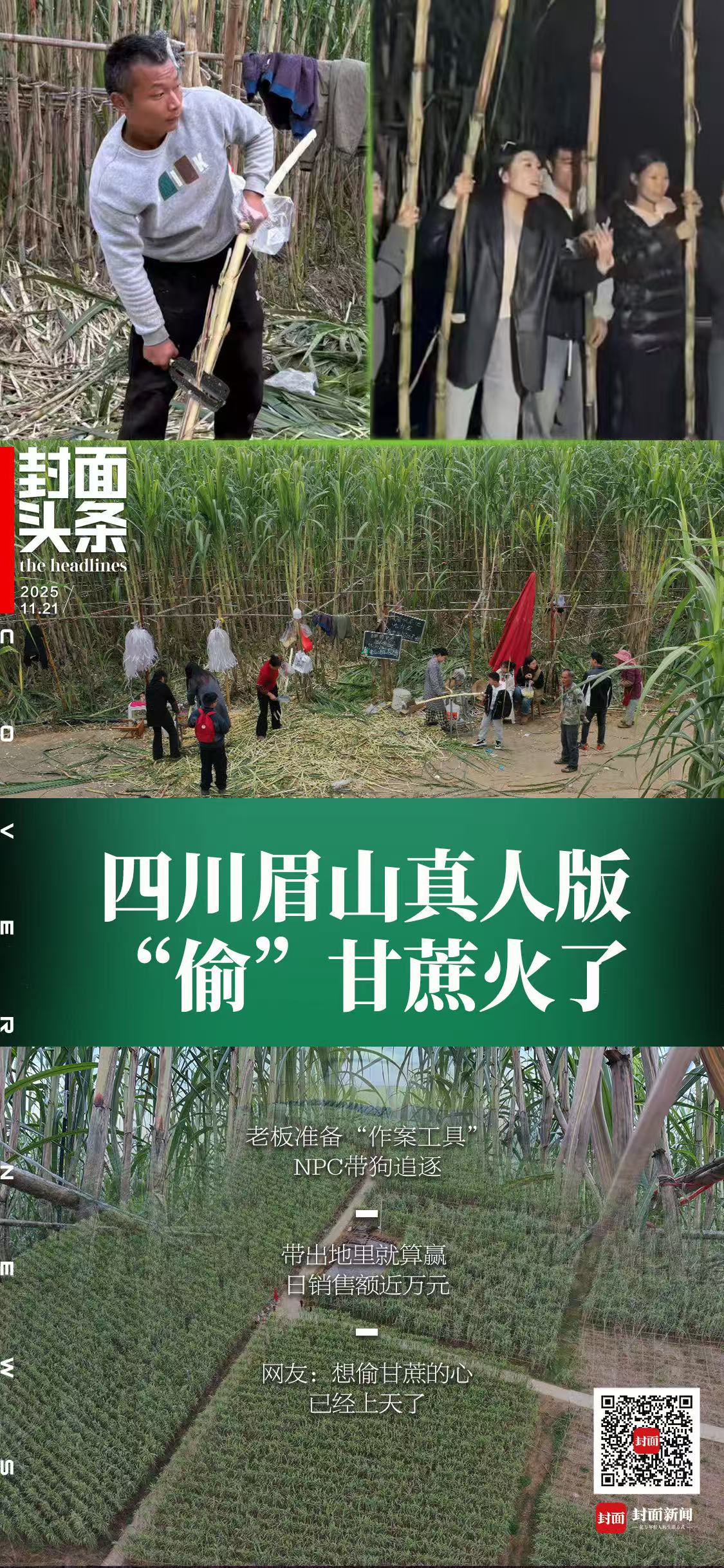 连日来,四川眉山真人版“偷”甘蔗持续引发关注,越来越多的网友点赞,并留言称:“想偷甘蔗的心已经上天了。”