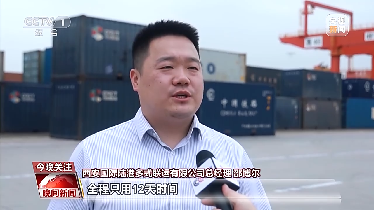 西安国际陆港多式联运有限公司总经理 邵博尔:全程只用12天时间,一些尖端的机械产品、精密的汽车配件、高端的化妆品,这些对时效性要求比较高的产品,都会选择全程时刻表中欧班列。