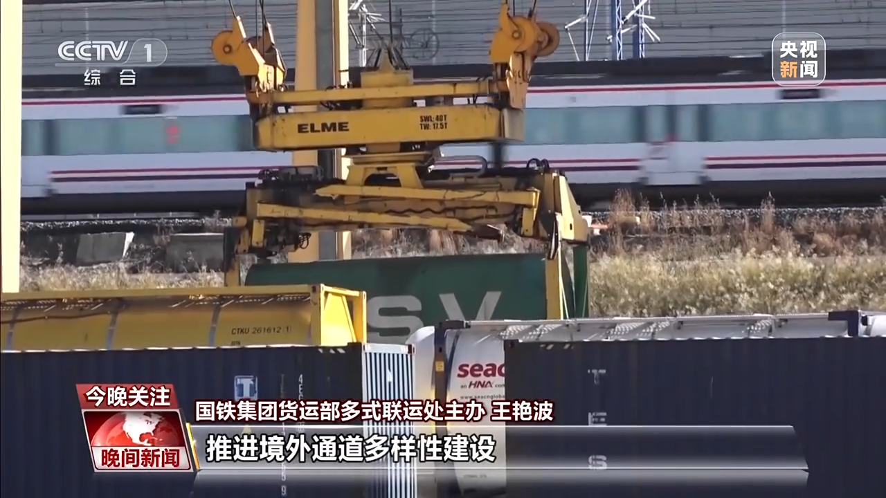 国铁集团货运部多式联运处主办 王艳波:我们正在积极探索中欧班列跨越黑海、里海线路开发,推进境外通道多样性建设,为对外贸易稳步增长提供更有力的运力支撑。