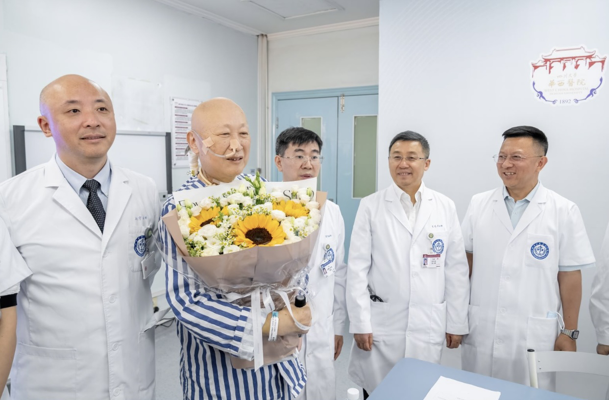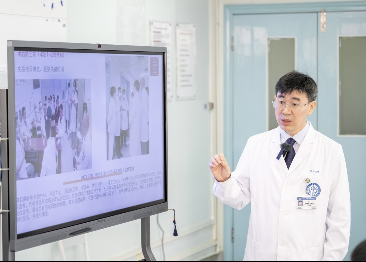 没有权威的指南可以参考,没有丰富的案例可以借鉴,患者的术后管理以及免疫抑制方案对医护团队来说都是一个全新的挑战。大家“摸着石头过河”,耳鼻咽喉-头颈外科、器官移植中心、重症医学科、感染性疾病中心、内分泌代谢科、心理卫生中心、临床营养科、呼吸内科、消化内科、肾脏内科的医护团队多次进行多学科讨论,多次进行联合查房。在医护团队的精心照护下,患者周先生未出现严重的免疫排斥反应。