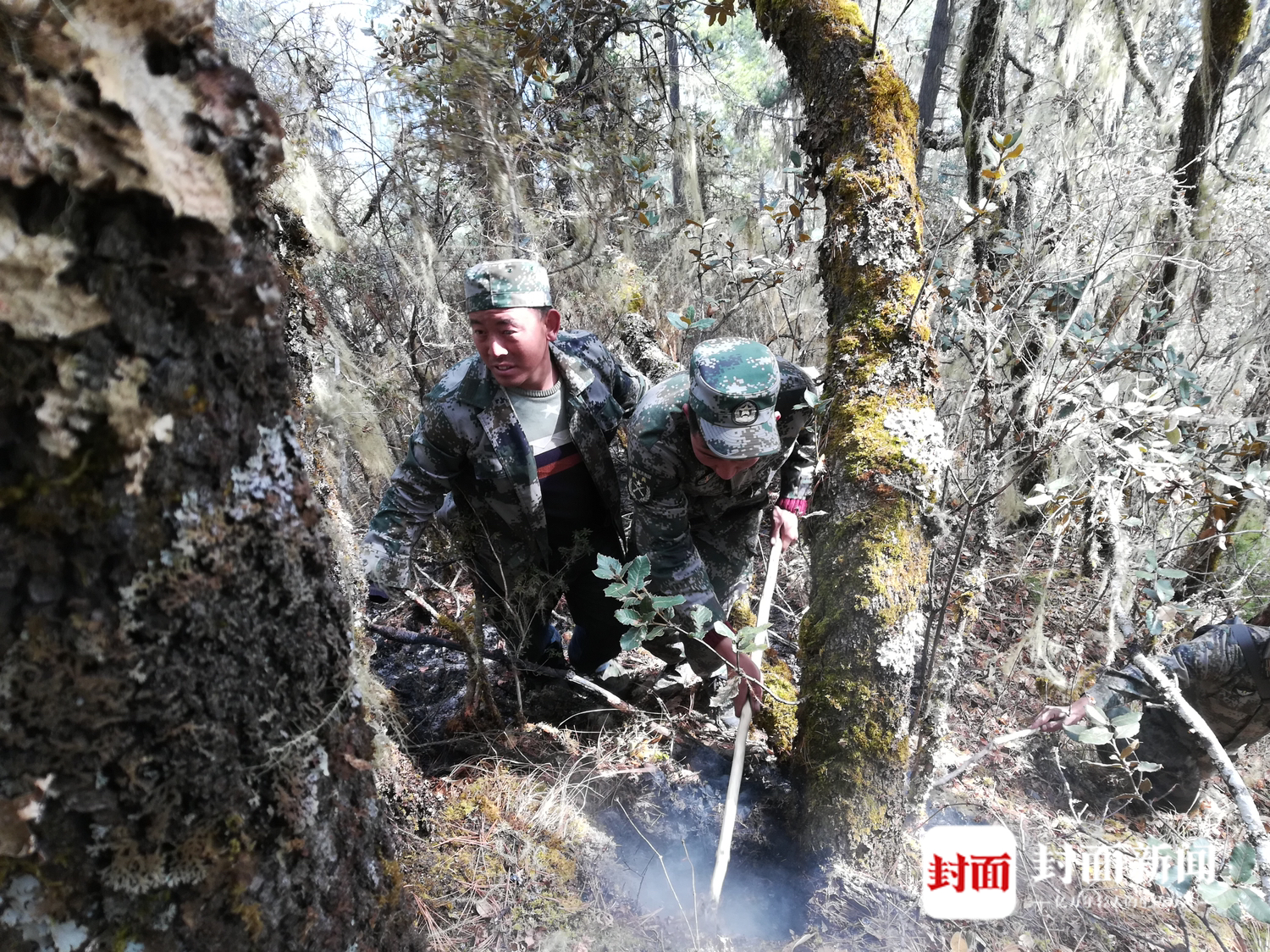封面新闻记者从四川省凉山州军分区了解到,自此次火灾的明火扑灭后,该军分区民兵力量与当地村民组成扑火力量仍然驻守火场,对周边的烟点进行处理,消灭一切复燃隐患。