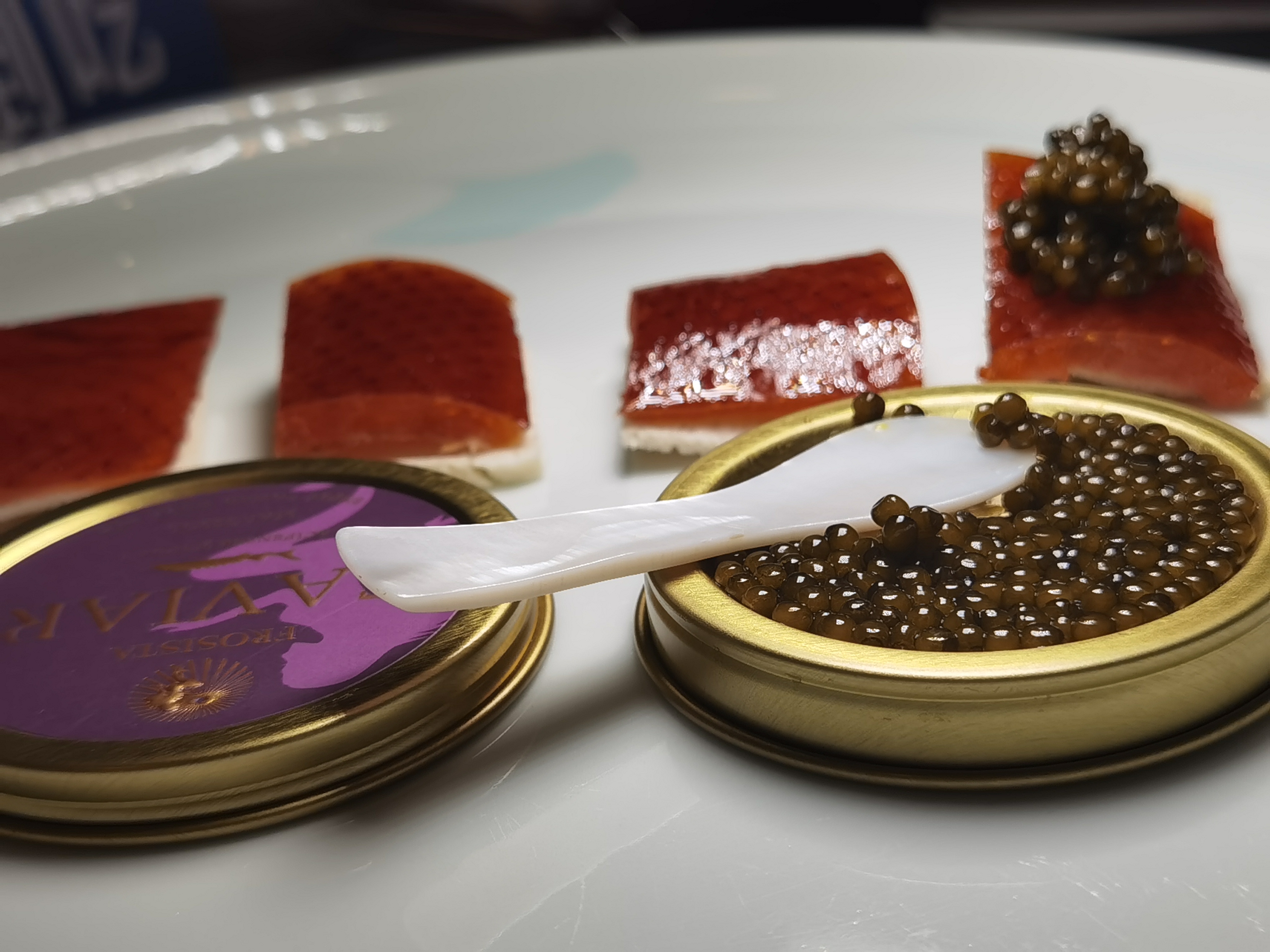 四川润兆食品有限公司总经理傅文杨在现场展示了品牌位于四川雅安等地高山雪水的11处优质基地。他介绍,一罐鱼子酱从鱼苗到幼鱼,成鱼养殖到取卵,至少历经10-15年,精挑细选,15分钟,17道工序,才能最终呈现在消费者面前。