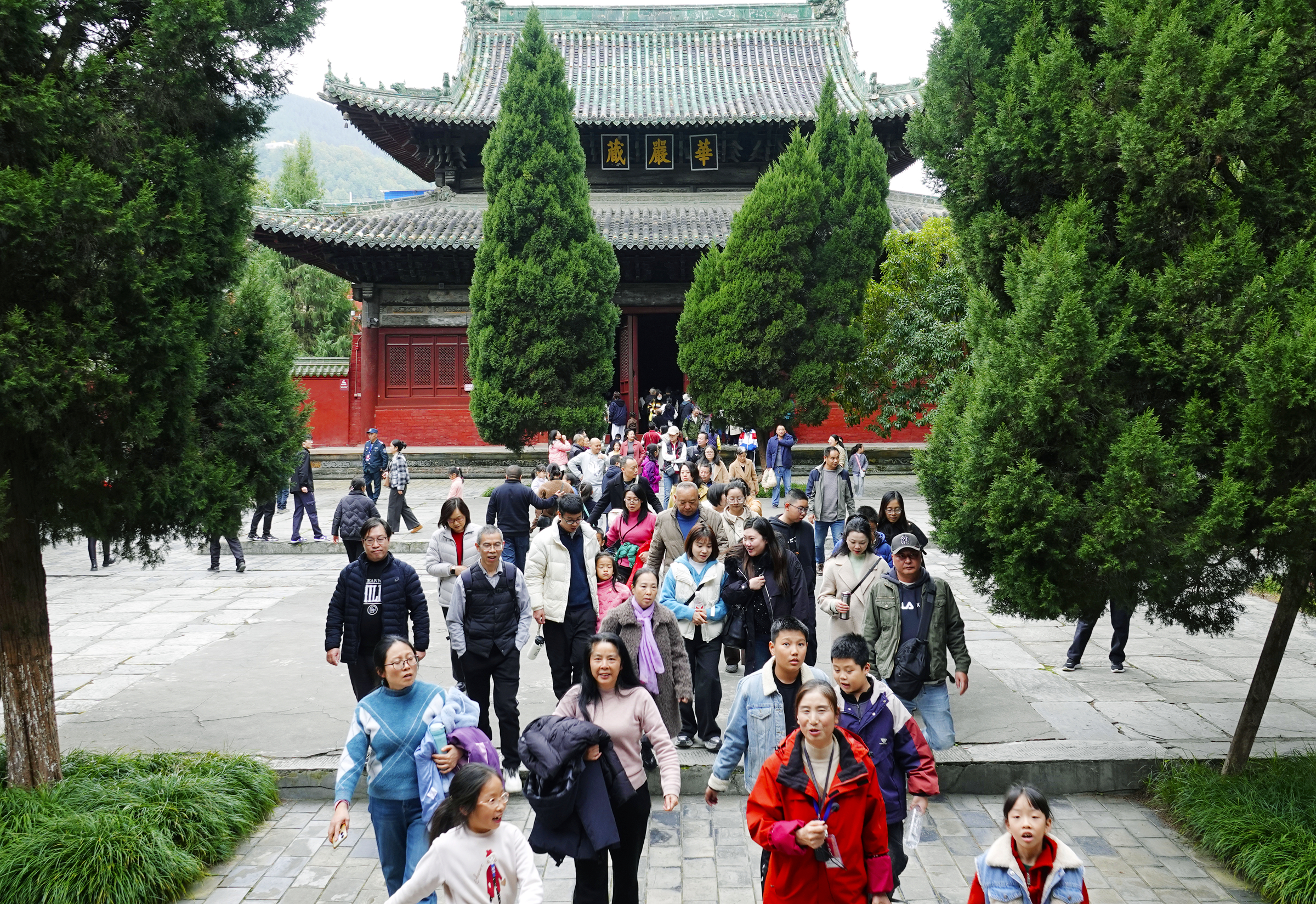 而在平武县城的报恩寺,古老的转轮经藏、精美的明代壁画与气势恢宏的斗拱建筑,吸引了众多游客驻足观赏。孩子们在家长的陪伴下,好奇地探寻着古建筑的奥秘,感受历史的厚重与先民的智慧。据景区统计,秋假首日,报恩寺接待游客2281人次。