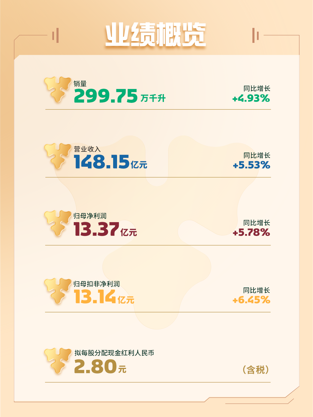 2023年,公司实现啤酒销量299.75万千升,同比增长4.93%。