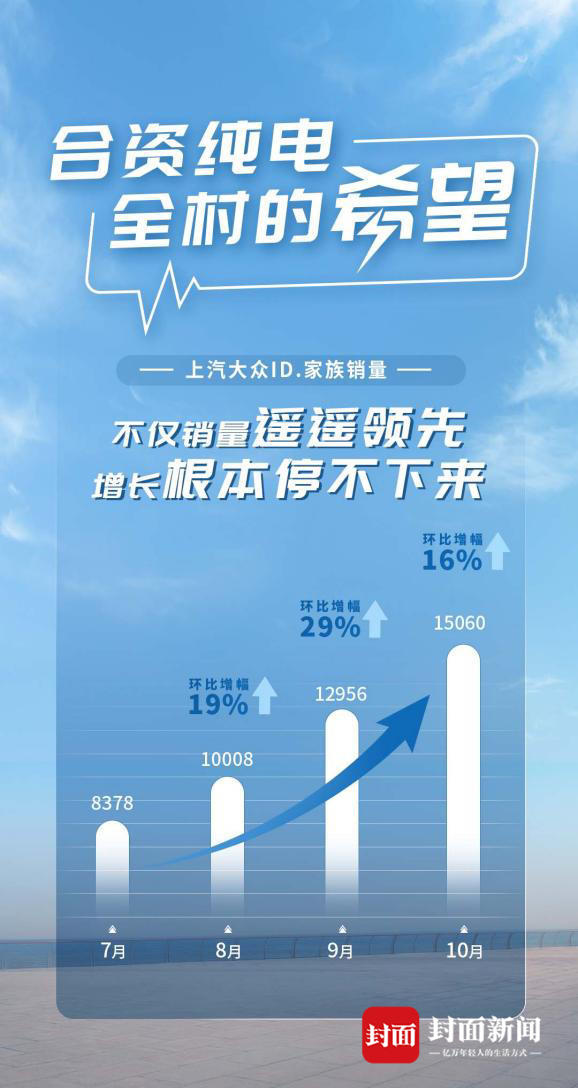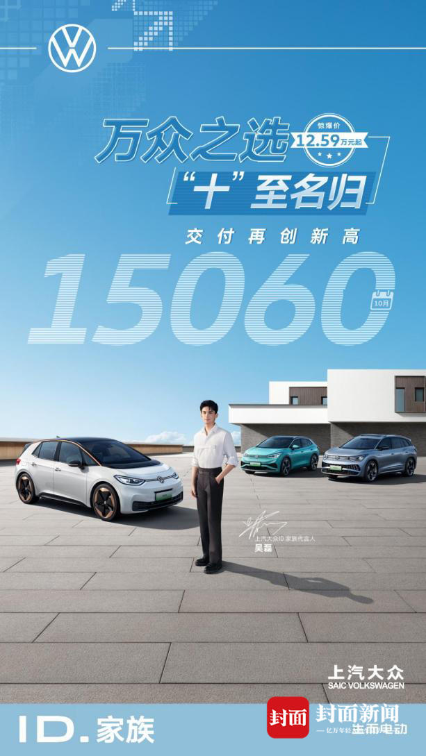 11月初,蔚来、理想、小鹏等新能源车企,相继公布了10月销量战报。就公布的数据来看,刚刚过去的10月,新能源汽车市场均迎来了大幅增长。而封面新闻注意到,在合资企业的新能源阵营中,上汽大众ID.家族“一马当前”。