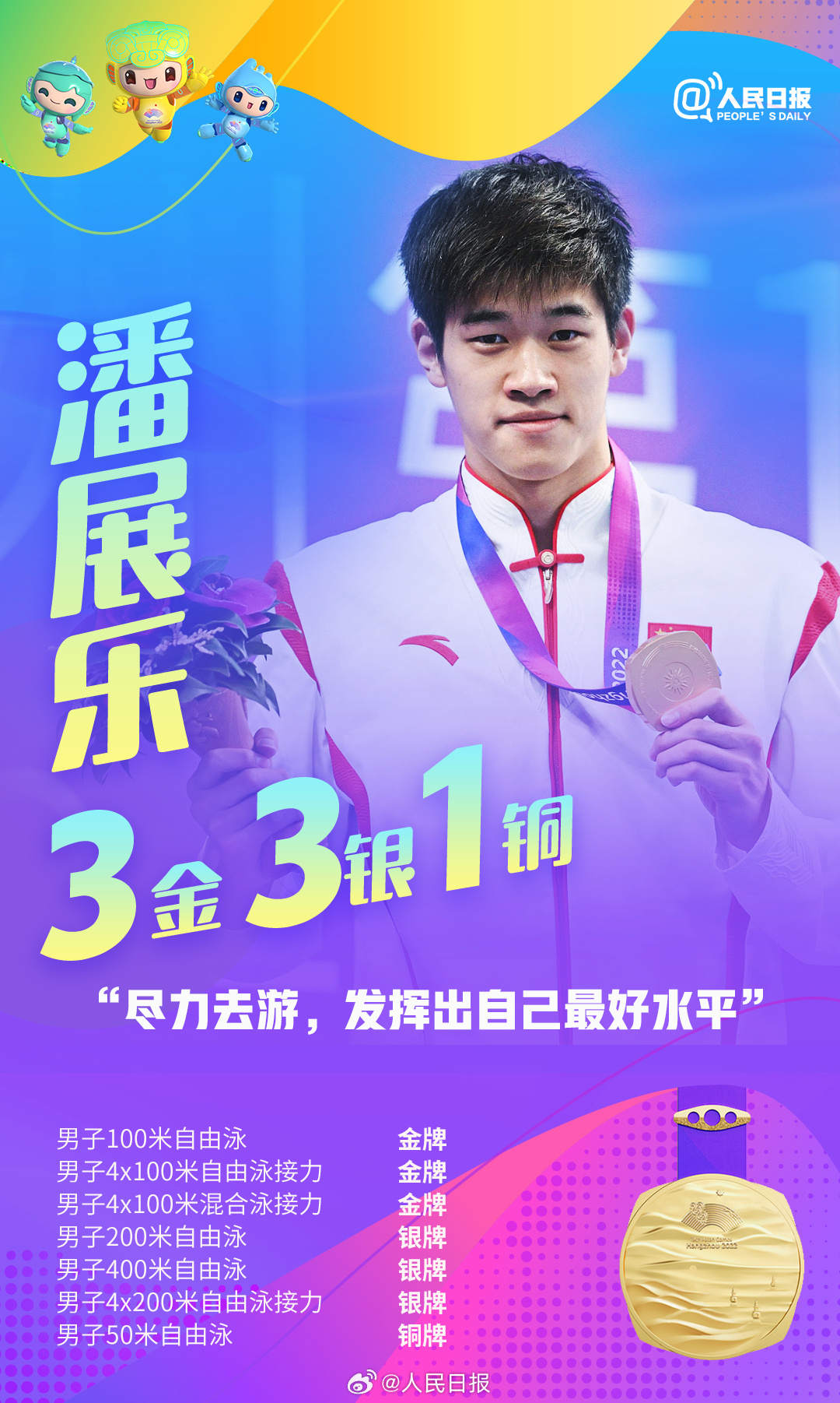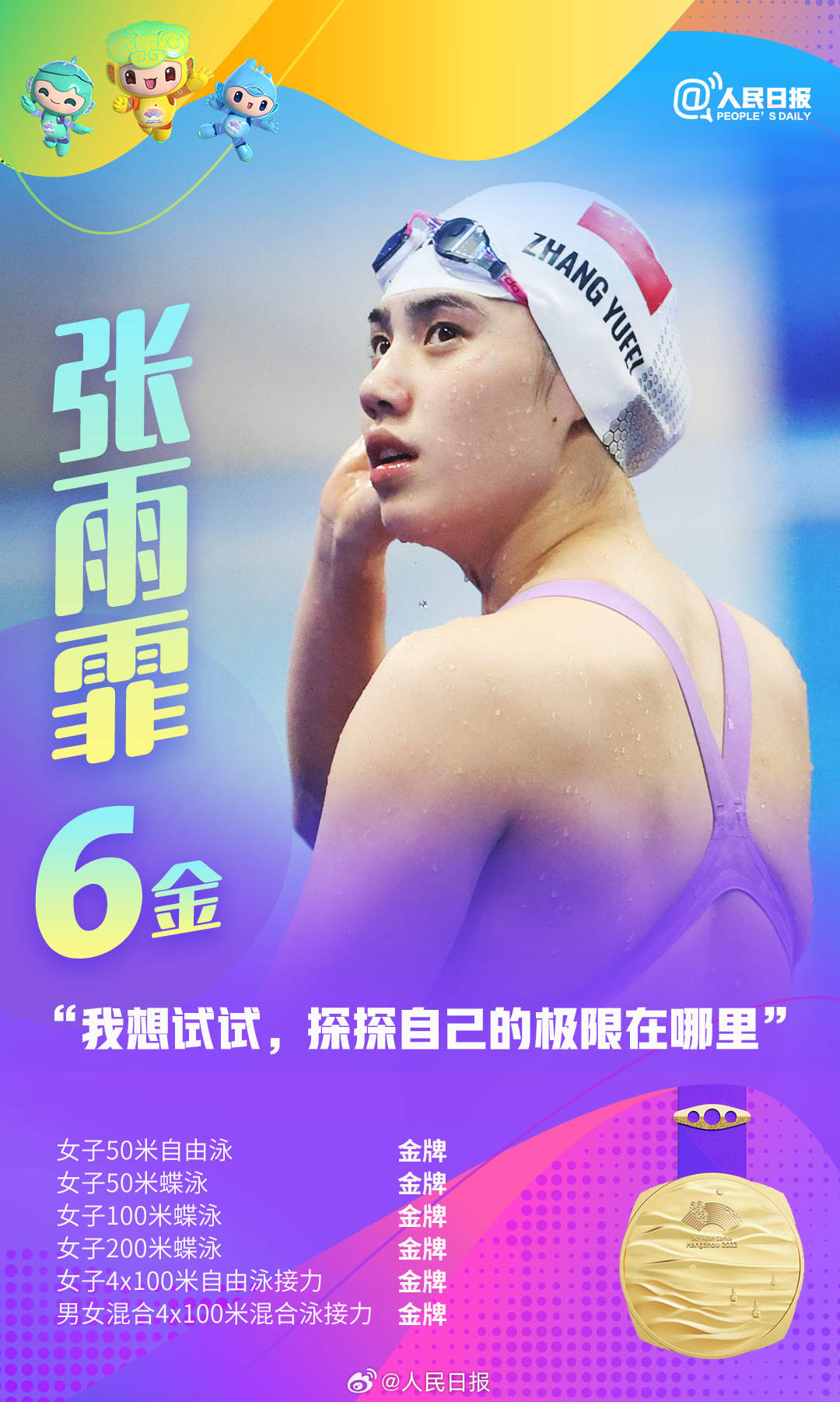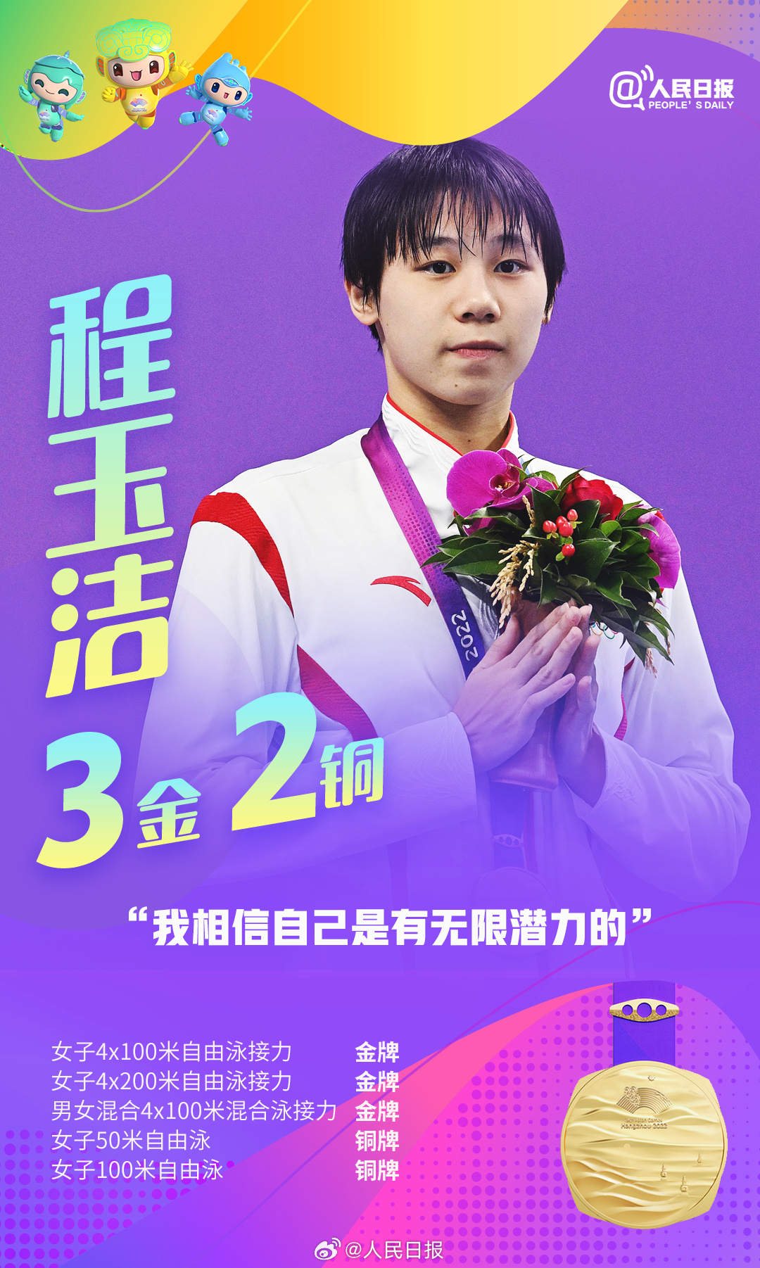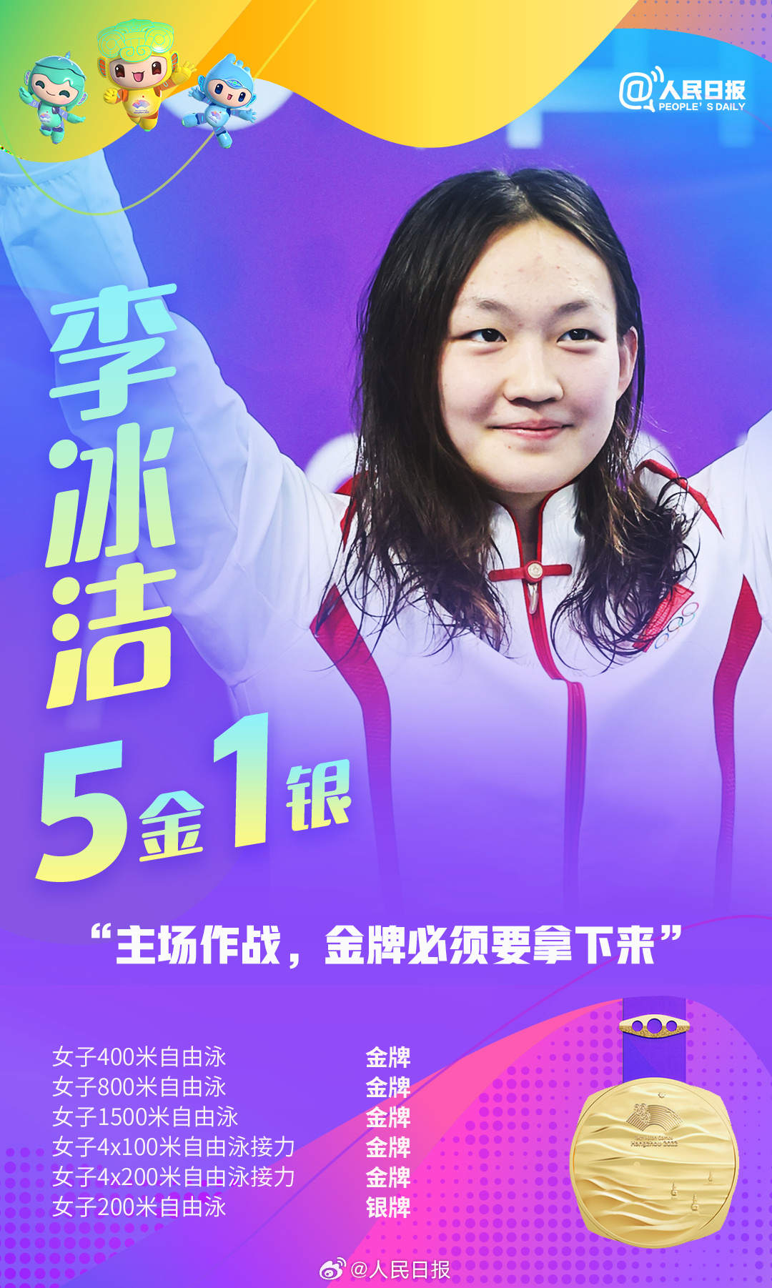 杭州亚运会进行中,中国队持续领跑奖牌榜,多位亚运健儿频频摘金夺银。张雨霏六金收官,王楚钦包揽四金,年仅17岁的黄雨婷成为杭州亚运会上的首个“三冠王”……网友直呼:他们是来亚运批发奖牌的吧!荣誉背后是无数艰辛付出,祝贺中国队,致敬所有拼搏!