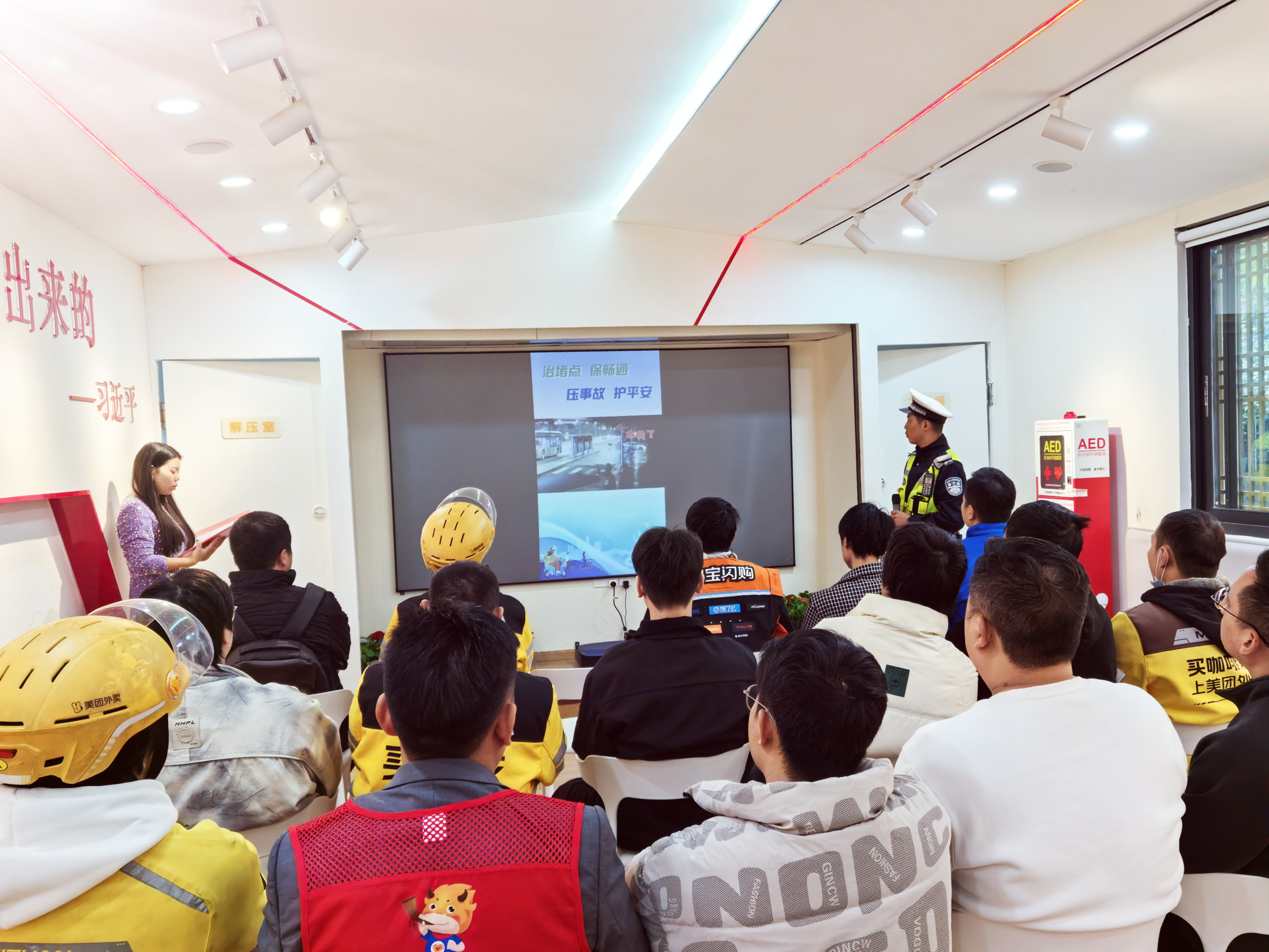 活动伊始,成都市交警三分局三大队唐升明警官聚焦骑手日常骑行中的“高频风险点”,结合近年来发生的真实典型事故案例,用通俗易懂的语言详细讲解了闯红灯、分心驾驶、不按规定车道行驶等交通违法行为的严重危害,让骑手们深刻认识到遵守交通规则的重要性。